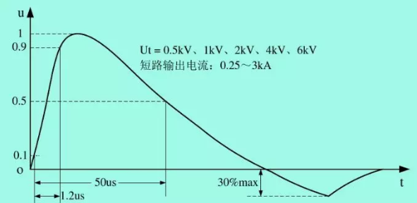 雷击浪涌抗扰度试验对不同产品有不同的参数要求,上图中的参数可根据产品标准要求不同,稍有改动。