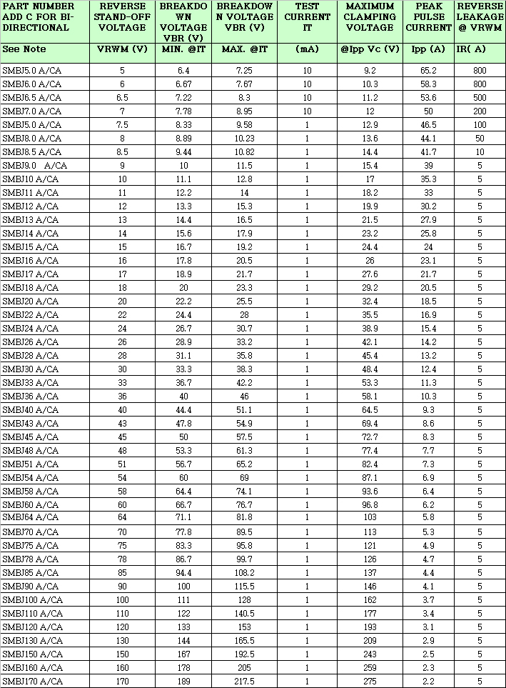 型号:SMBJ5.0A/CA-170A/CA